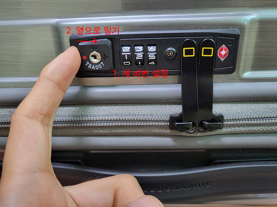 1. 초기비번 000으로 변경 → 리셋 버튼 누름 → 새 비번 설정 → 지퍼 끼우기 → 옆으로 밀기