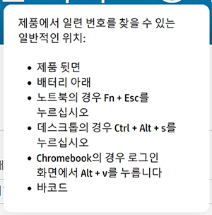 1. 여기클릭에 들어 갑니다. → fn키를 누르고 있는 상태에서 esc키를 누릅니다. → 일련번호를 복사해 붙여넣기 합니다. → 제출하기를 선택합니다.