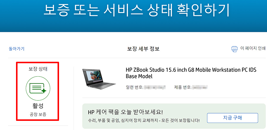 2. 보장 상태에서 활성이라고 떠 있으면 보증 기간이 남아 있는 상태입니다.